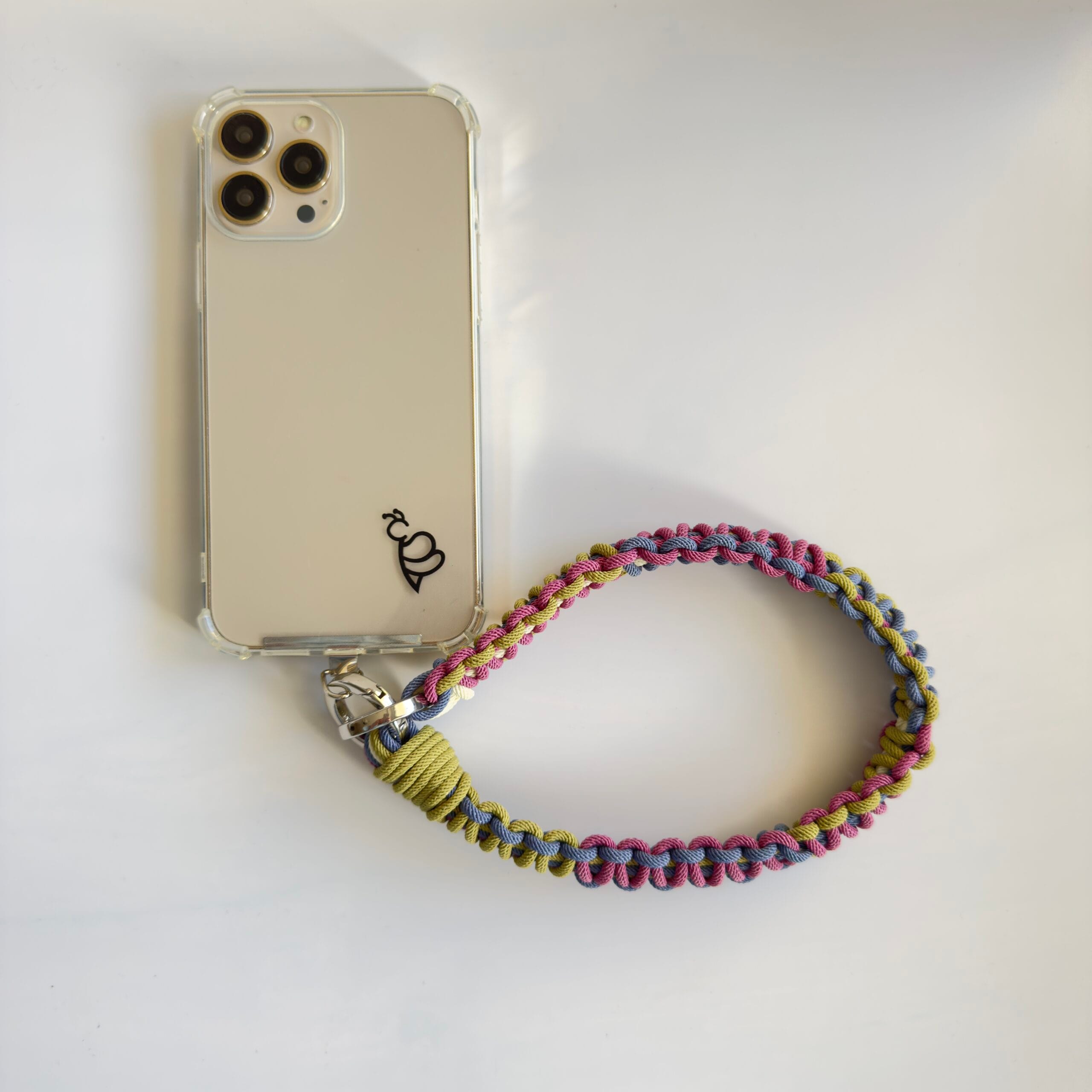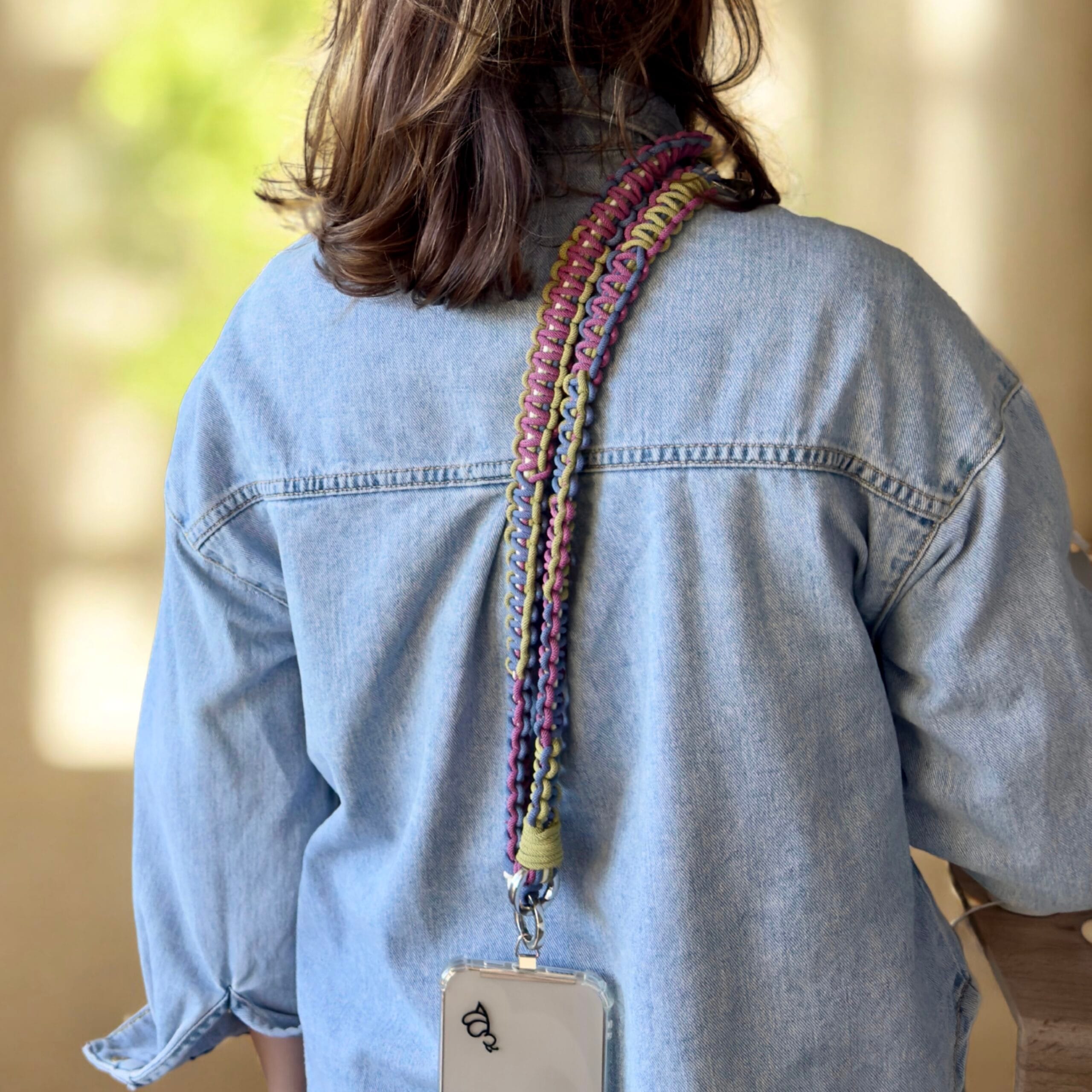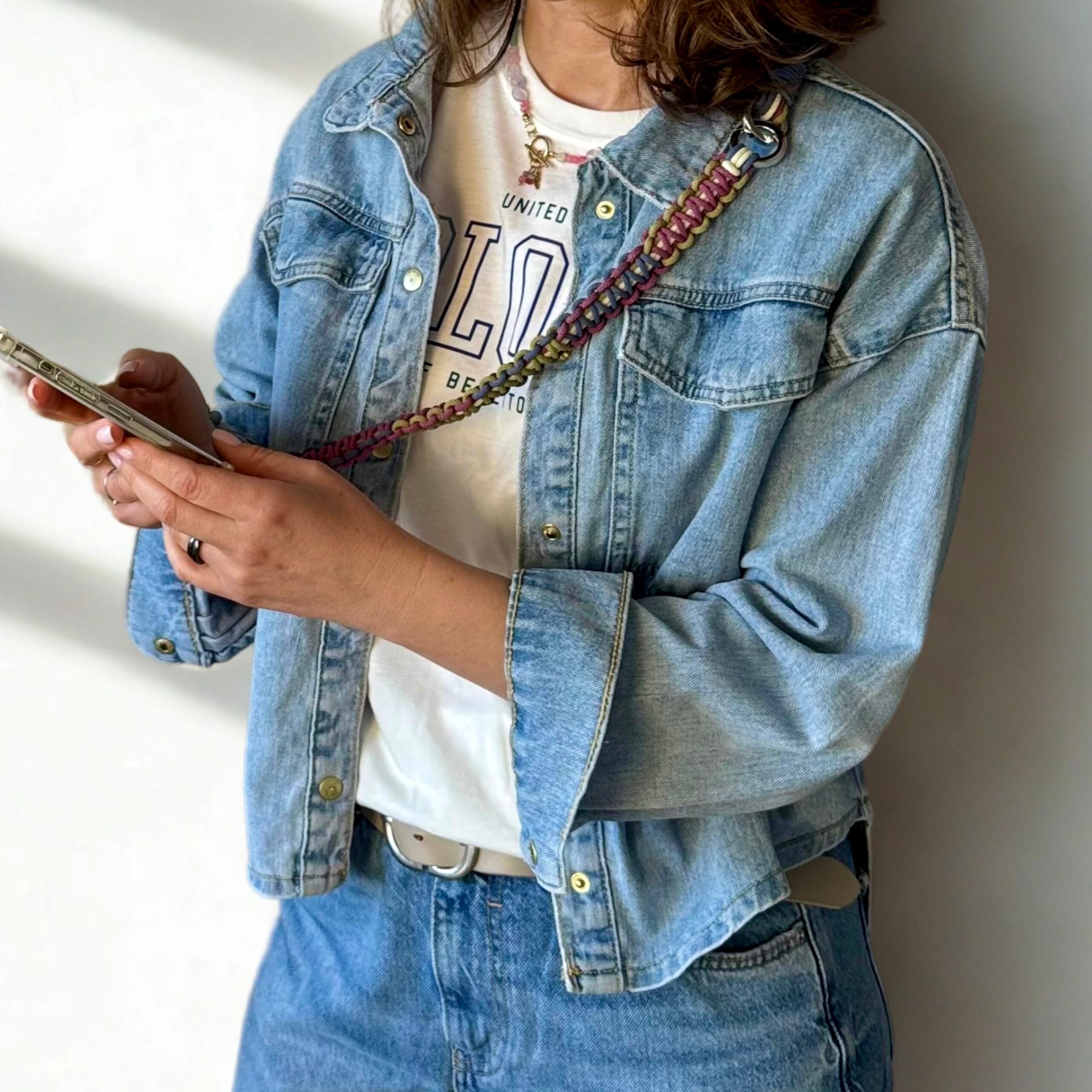 Jeśli kochasz subtelne, kojące kolory i minimalistyczny styl – Ava jest właśnie dla Ciebie. Ten sznurek do telefonu łączy trzy stonowane barwy: chłodny niebieski, łagodny fiolet i zgaszoną zieleń, tworząc delikatną kompozycję, która świetnie pasuje do codziennych stylizacji.